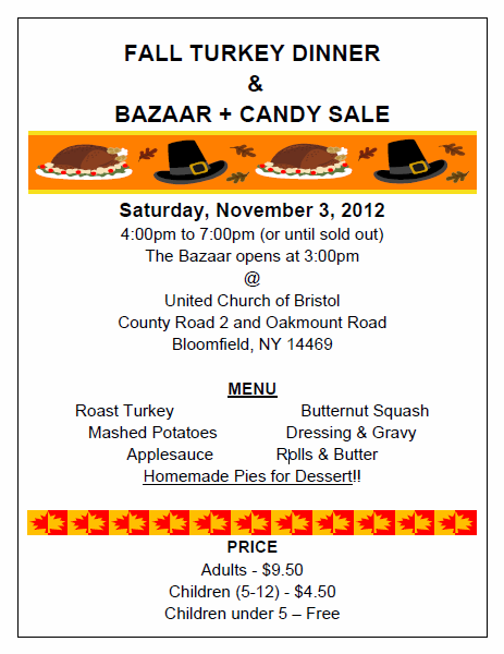 FallTurkeyDinnerFlyer Published October 9, 2012 at 463 × 600 in Welcome to the United Church of Bristol!